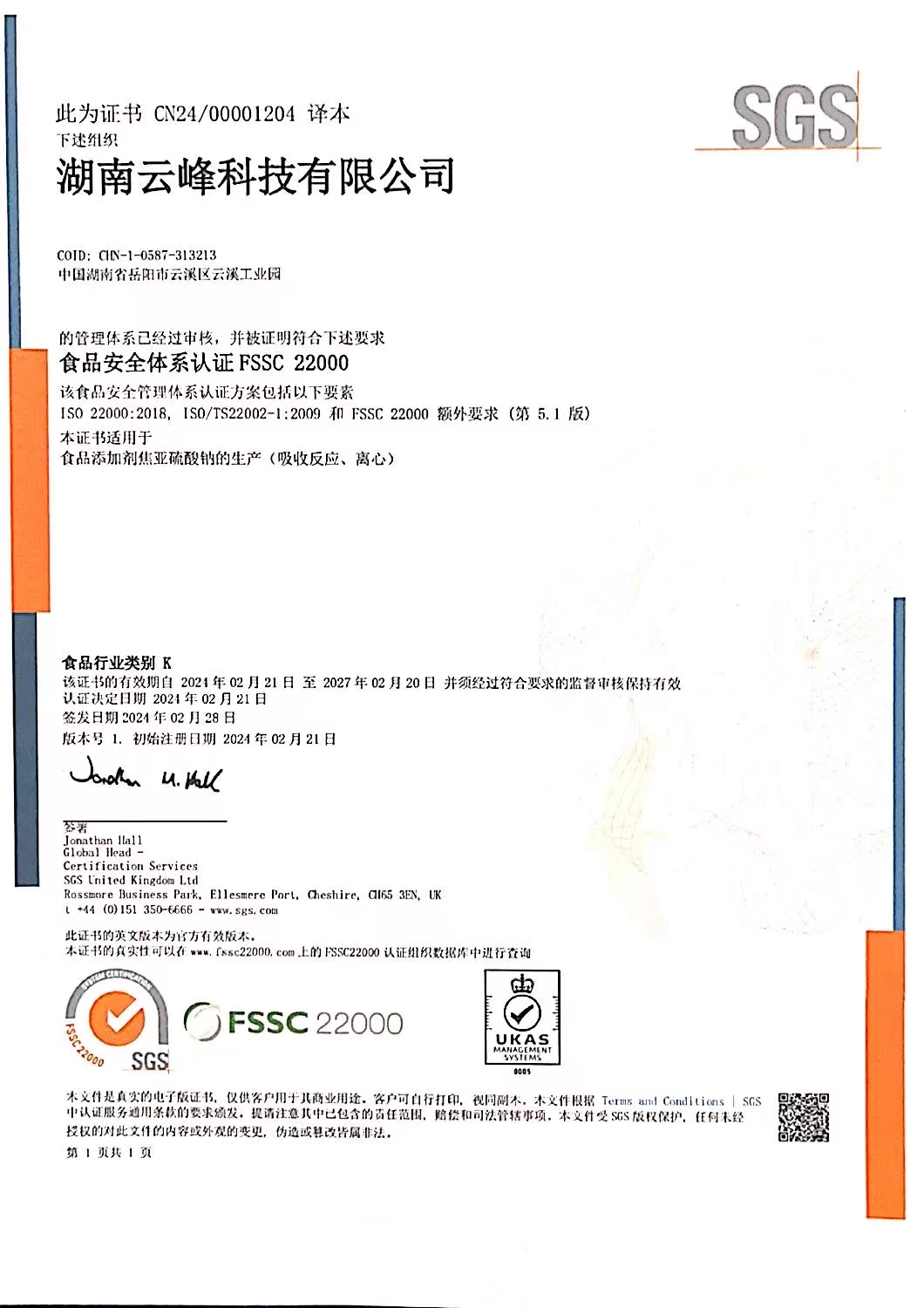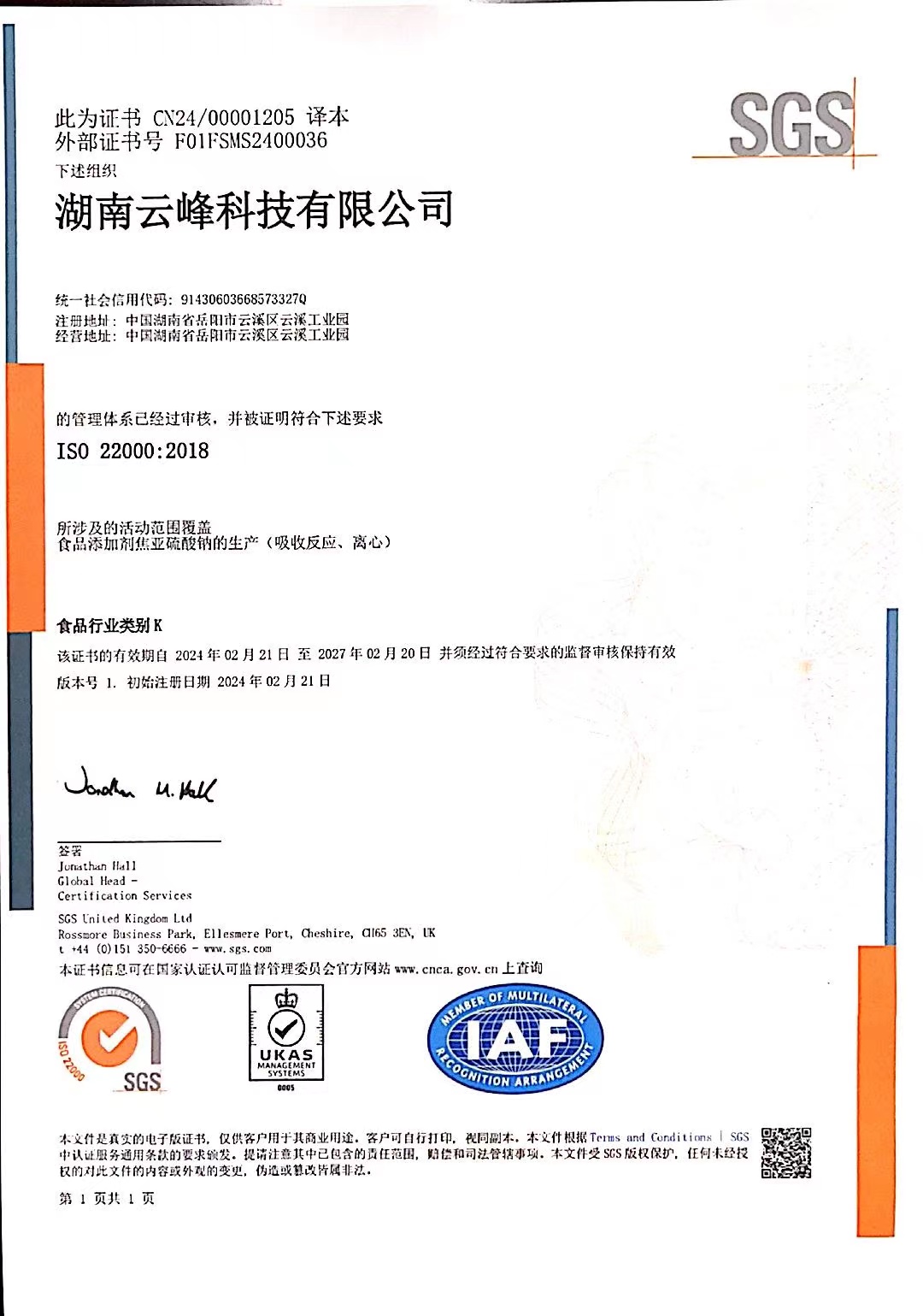 湖南云峰科技有限公司(以下簡稱云峰科技),是由長沙湘岳化工責任有限公司全額投資以生產(chǎn)焦亞硫酸鈉、亞硫酸鈉等亞硫酸鹽為主營業(yè)務(wù)的高科技企業(yè),具有六十多年的生產(chǎn)歷史,同時也是焦亞硫酸鈉的國家標準制定參與者。在行業(yè)內(nèi)具有很大的影響力。現(xiàn)有職工八十余人。具有優(yōu)良的經(jīng)營管理團隊和成熟的生產(chǎn)技術(shù)隊伍。由多位在化學、化工行業(yè)擁有豐富工作經(jīng)驗的工程師及技術(shù)員團隊組建而成,致力于亞硫酸鹽產(chǎn)品的研發(fā)、生產(chǎn)和銷售。2020年公司對生產(chǎn)設(shè)備、安環(huán)設(shè)施及工業(yè)技術(shù)等進行了大規(guī)模的升級改造,使焦亞硫酸鈉和亞硫酸鈉的生產(chǎn)工藝更加先進,技術(shù)更成熟,產(chǎn)品質(zhì)量更優(yōu)良。無論在生產(chǎn)工藝、設(shè)備、產(chǎn)品質(zhì)量、清潔生產(chǎn)、節(jié)能環(huán)保和員工素質(zhì)方面,均處于行業(yè)領(lǐng)先地位。公司的主導(dǎo)產(chǎn)品“云峰”牌焦亞硫酸鈉,歷史悠久,深受國內(nèi)外客戶信賴,產(chǎn)品遠銷東南亞、歐美、非洲、南美洲等20多個國家和地區(qū),產(chǎn)品供不應(yīng)求。
